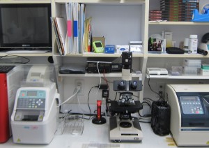 ・血球計算装置、血液生化学検査、内分泌測定、尿検査の機械や顕微鏡などを備えており検査結果は当日に分かります。